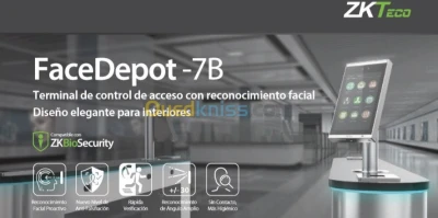 Terminal de reconnaissance faciale intérieure facedepot 7B ZKT avec un design mince et exquis et un écran de 7 pouces. Fonctionnalités: • Reconnaissance faciale de la lumière visib