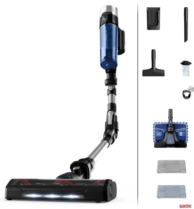 Rowenta Aspirateur balai laveur sans fil, Aspiration puissante jusqu'à 200 AW, Batterie longue durée jusqu'à 1h10, Vitesse auto, Détection du sol, Aqua, Stand charge, X-Force Flex 14.60