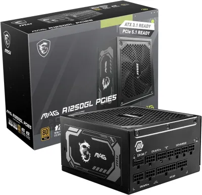 MSI MAG A1250GL PCIE5 est une alimentation de 1250W conçue pour répondre aux besoins des ordinateurs haute performance. Elle supporte la technologie PCIe 5.0, offrant une alimentation stab
