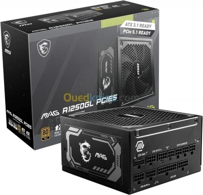 ✅INFORMATIONS GÉNÉRALES : ✅Désignation : MSI MAG A1250GL PCIES 5 - ALIMENTATION FULL MODULAIRE 1250W - 80 PLUS GOLD - ATX/EPS - NOIR ✅Marque : MSI ✅Modèle : MAGA1250GL ✅CARA
