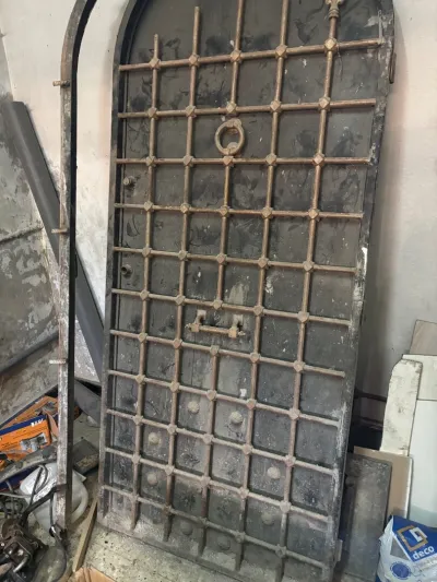 À vendre une porte métallique blindée ovale d’entrée principale très solide et lourde anti rouille en très bonne état complet avec cadre . 2.20mx 1.10m