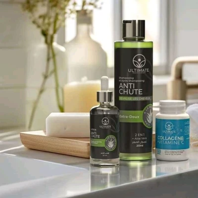 Pack Anti Chute Ultimate SKU-250 Pack anti-chute ( Shampooing et lotion ) hydrate et renforce les cheveux qui ont tendance à tomber et à se casser. En une semaine seulement, il réduit la