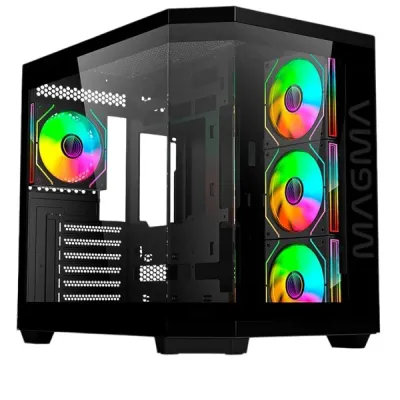Boîtier Magma V950 Black ARGB Le Magma V950 est un boîtier moyen tour au design moderne avec façade en mesh, panneaux latéraux en verre trempé, et un système d'éclairage ARGB personna