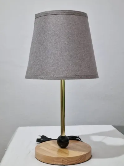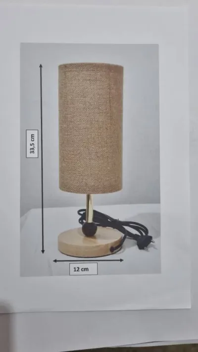 Veilleuse en tissu solide lavable structure en métal démontable et base en bois avec une touche en boule en bois pour plus de personnalité existe en plusieurs couleurs Dim 33,5 cm X 12 c