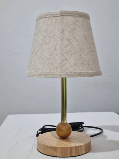 Veilleuse en tissu solide lavable structure en métal démontable et base en bois avec une touche en boule en bois pour plus de personnalité existe en plusieurs couleurs Dim 28,5 cm X 12 cm