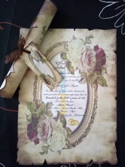 Pour les fêtes et les mariages des cartes d'invitations à un prix raisonnable à partir de 20 DA fourniture et impression Disponible 24h sur 24 / 7j sur7 Délai de Commandes 24h A co
