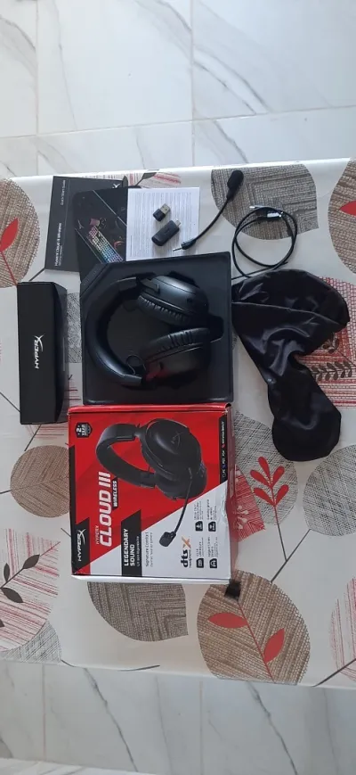 5awti casque hyper x cloud 3 wirless fel black état 1000/10 avec boite et accessoires (sauf le sac) prix affaire 3 millions bark