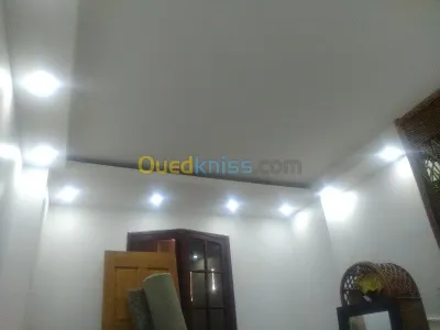 -faux plafond en placo plâtre. -revetement mural en placo platre . -cloison de separation en placo platre -decoration en placo platre (meuble TV /etageres ....etc). - peinture moderne