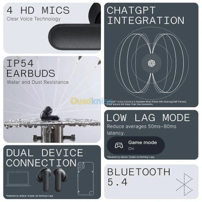 Hybrid ANC up to 48 dB Up to 55 h total battery 11 mm dynamic drivers Bluetooth 5.4, dual connection 6-mic clear call system Low-latency gaming mode IP55 earbuds, IPX2 case