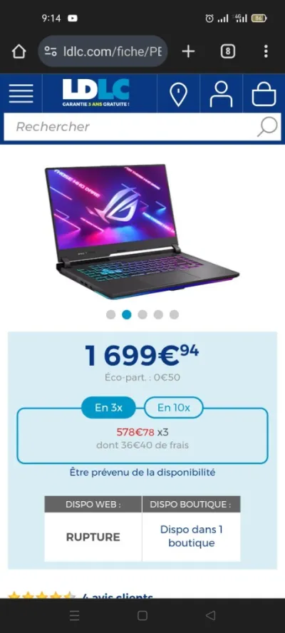 LAPTOP DELL Latitude 5410 Intel® Core™ i5-10310U Processor, 6M Cache, up to 4.40 GHz, 4 CORES 8GB RAM 256GB SSD ECRAN 14" FHD **Prix** : 59 000da Livraison à domicile disponible 58