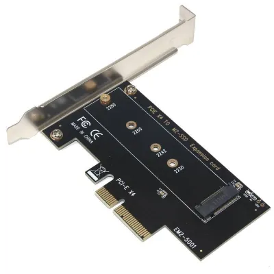Adaptateur PCI Express 4X vers M.2 (Clé M) – SSD NGFF 🔧 Fonctionnalités : Interface : PCI Express 4X Slot d’extension : M.2 Clé M uniquement Compatibilité : SSD PCIe NVMe M.2