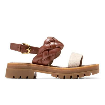 • Tige en toile coloris naturel et cuir coloris Dark Cuoio, avec fermeture par boucle dorée. • Semelle crantée en caoutchouc, 28 mm à l’avant-pied et 40 mm au talon. • Première d