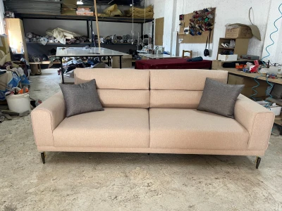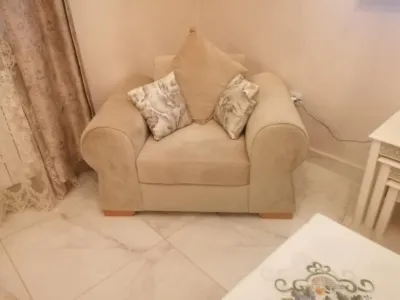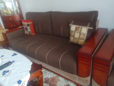 Un grand salon anti taches couleur 'noisette avec pied hêtre tres bon etat