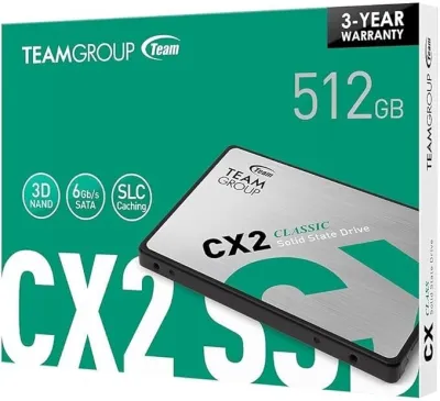 TEAMGROUP CX2 2.5 SSD 512GB MDL T253X6512G0C101 SATA 6Gb/s Team Group CX2 2.5" 512 Go Série ATA III 3D NAND Capacité du stockage numérique 512 Go Interface du disque dur ATA Technologie d