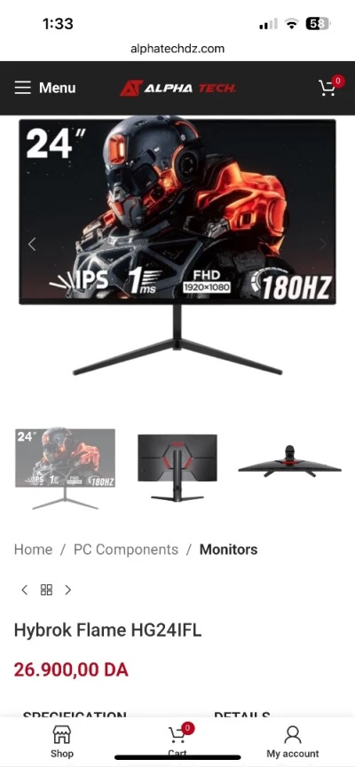 واحد من أفضل الشاشات سعر مقابل أداء HybroK HG24IFL SPECS : - 24" IPS PANEL - Refresh Rate 180Hz /1ms - Adjustable Stand - Stereo Speakers متوفر ال�