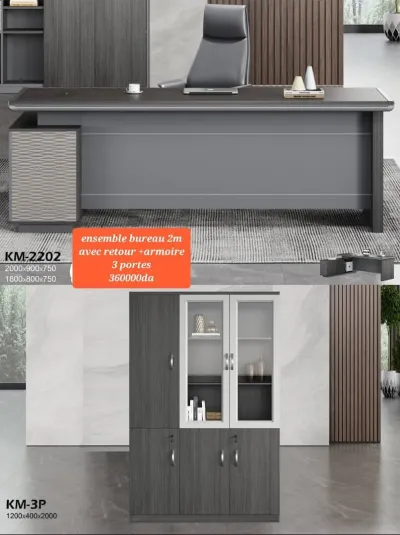 Ensemble Bureau + Armoire + Retour en MDF 🪑✨ Découvrez un ensemble de bureau moderne et élégant, parfait pour un espace de direction professionnel. Conçu en MDF de haute qualité, i