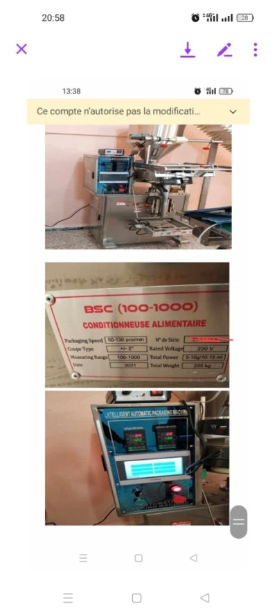 Disponible sur commande ensacheuse Temps de travail : Dimanche - Jeudi 8h-16h