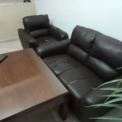 Je mets en vente un fauteuil 3pièces (4 places) en cuire elegant ,ces fauteuils sont de couleur marron aubergine , confortable ,moderne et robuste ,quelques traces d’usures visible note