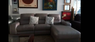 Fauteuil L acheté en 2022 a cheraga , etat tres tres bon. Couleur : bleu, Dimension: 2m×3m. Merdienne a droite. Structure: bois hêtre, eponge : D35. Fauteuil peu utilisé. Légèrement