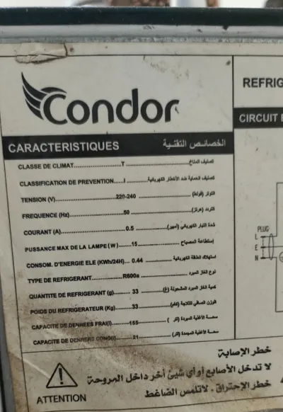 Salam je vends mon frigo marque condor très bonne état premier main jamais de problème