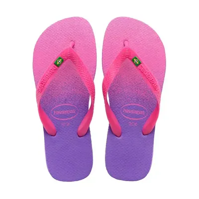 Les classiques Havaianas Brasil prennent une touche de modernité. En plus du drapeau emblématique sur les lanières, ce modèle est désormais doté d’un appelant motif dégradé en form