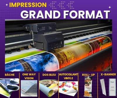 *impression numérique grand format sur tous supports : _ Autocollant Mat et Brillant ,one way ,Bâche ,Flag , sablè _ Affiche grand format _ Drapeau _ Habillage de grande vitrine _ Habi