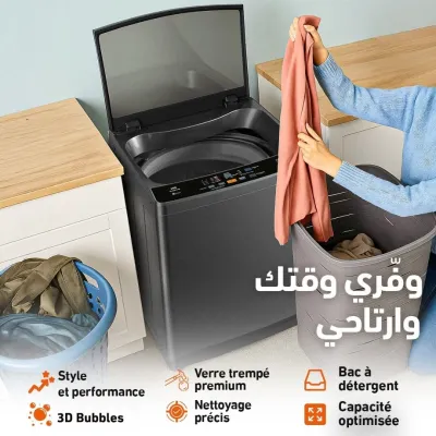 Machine a laver la top la marque iris Automatique Disponible 10.5kg ● blanc / gris ● Garantie 2 ans ● Livraison disponible