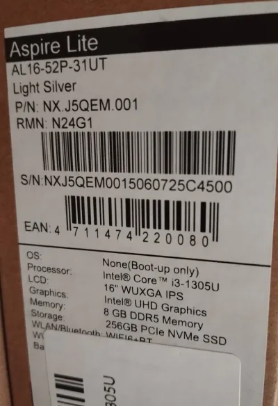 💻 Acer Aspire Lite – AL16-52P-32E3 Intel Core i3-1305U • 8 Go DDR5 • 512 Go SSD NVMe • 16″ WUXGA IPS --- 🔧 Caractéristiques techniques : ⚙️ Processeur (CPU) : Intel