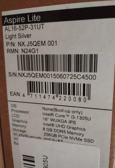 ACER ASPIRE LITE AL16-52P-31UT i3-1305U / 8GB RAM DDR5 / 256GB NVME SSD / WIFI 6 / LCD 16''