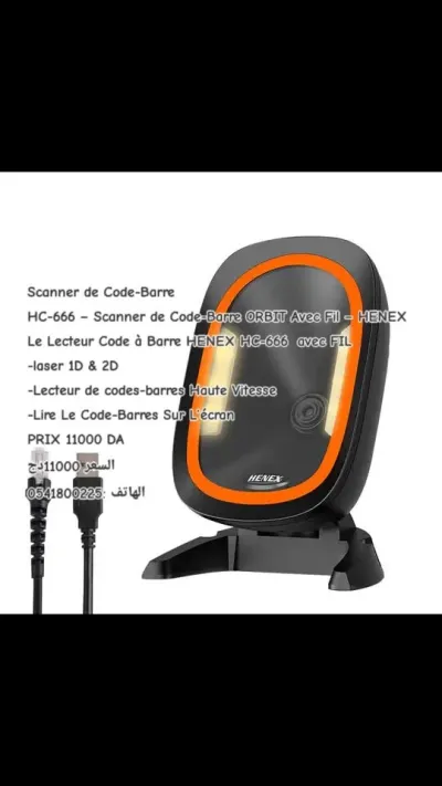 Le Lecteur code barre HENEX HC-666N 2D 3D QR un lecteur de code à barres hautement performant conçu pour lire des codes 1D. 2D et 3D. Doté d'une technologie avancée. il est rapide. p