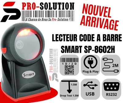 Lecteur Code A Barre Smart 8608: Interface USB.RS232 Lumière: ledrouge Modede scan: automatique Garantie : 12 Mois Lecteur Code A Barre Smart 8602: Interface :USB .RS232 Lumiere:LED ROUGE M