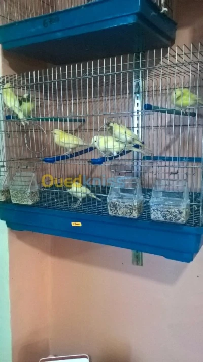 كاين كوبل كاناري اوردينار اصفر العمر اكبر من عام مع ولادهم زوج العمر مابين 2-3 اشهر معاهم لاكاج تاعهم من ا