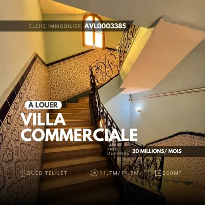 📌 Réf : AVL0003385 🏡 Villa commerciale à louer – Oued Tlelat, Oran Une villa commerciale à louer, située à Oued Tlelat – Oran, dans un emplacement stratégique et commercial