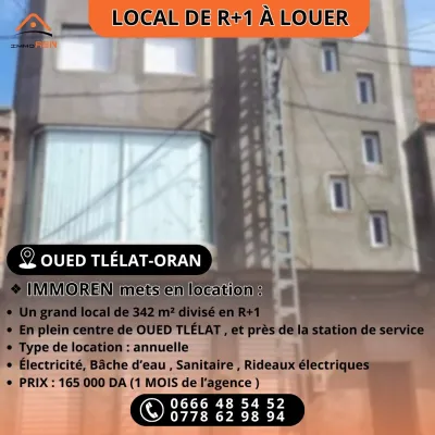 🔹ImmoREN met en location : Un local de R+1 à louer situé à OUED TLELAT . 🔸C'est un édifice situé en plein centre de Oued Tlelat. Prêt de la station service. Rez-de-chaussée et