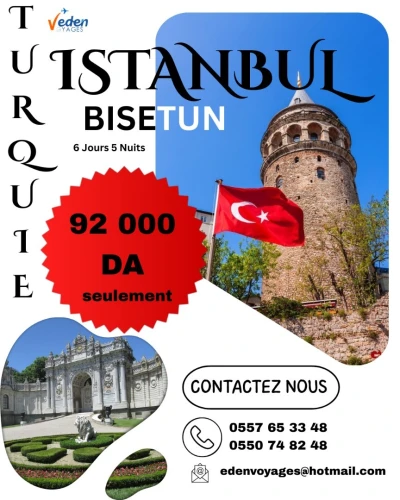 Disponible billet d'avion -ISTANBUL A 49000DA Avec TURKISH AIRLINES Aller le 29dec retour le 05jan