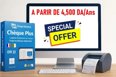 Découvrez Chèque Plus – Vega Solution, un logiciel professionnel d’impression sur chèques compatible avec toutes les banques algériennes et entièrement bilingue (Français & Arabe)
