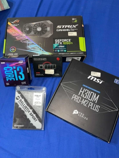 i3 10100 Ram : 24gb DDR 4 3000mhz ballistix SSD:120gb Apacer HDD:1To Seagate GPU:GTX 1650 Asus TUF PSU:Golden field ATX 350w Motherboard: Asus Prime h410m Boitier : Spirit of Gamer Deathmatc