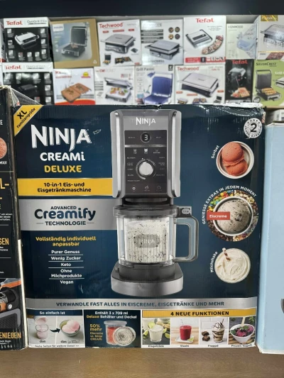 ✅ Ninja CREAMi Deluxe Sorbetière machine à desserts glacés 3 bacs, 10 fonctions,crème glacée, sorbets,yaourts glacés, des milkshakes, des slush et plus encore, option de saveur 2 en