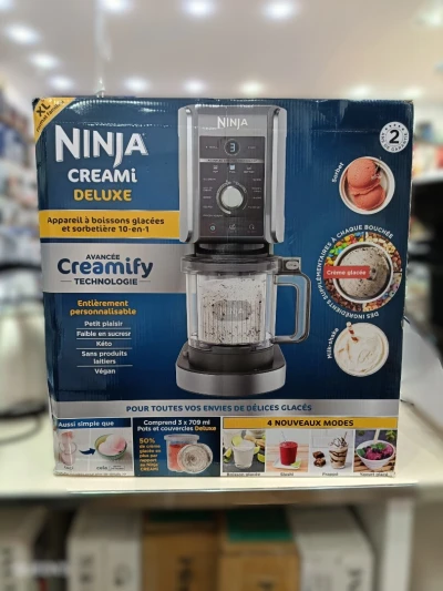 * Fonctionnalités: 1- Machine à glaces et boissons glacées avec 3 pots Creami Deluxe de 709 ml et couvercles (garantis sans bisphénol A) 2- Technologie Creamify Advanced : savourez des g