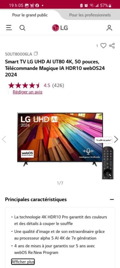 ------PROMOTION------ Téléviseur LG UHD 4K Smart 50" Neuf sous emballage Avec LG Web os Télécommande Magic 5 ans de mise à jour. Garantie 2 ans.