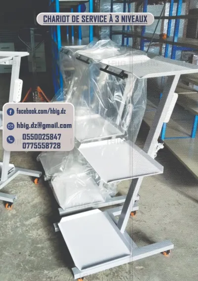 Chariot 3 étagères avec multiprise: - Structure métallique avec peinture époxy - roulettes de haute qualité - multi prise