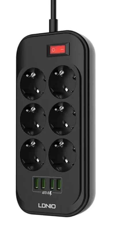 Spécifications générales: Marque: LDNIO Port USB: 4 Prise: Prise UE Poids du produit: 351g Dimensions: 22*10.9*4cm Couleur: Noir Paramètre évalué: 2500W-10A 250V Port de sortie: 6 x ca