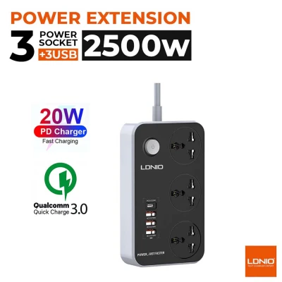Obtenez une connexion de charge rapide LDNIO SC3412 PD de 38 W avec 3 prises de courant et 3 ports de charge rapide USB 3.0. La nouvelle version de la connexion électrique LDNIO avec 3 ent