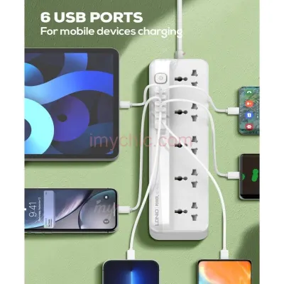 6 ports USB de charge rapide et 5 prises de courant pour une meilleure performance Fabriquée en matériaux résistants aux hautes températures et anti-flaming Cordon d’alimentation de 20