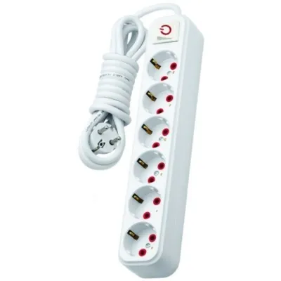 Multiprise avec 5 prises de terre et protection contre les surtensions La multiprise en forme arrondi avec un cordon de 3 mètre vous permet de brancher simultanément 5 appareils