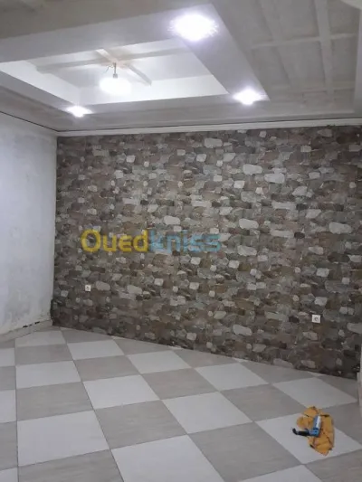 Un jeun maçon qualifier / Haute qualité d'exécution Finition intérieure chambres, salons, halls, cuisines, salles de bains : faience dalle de sol plafond PVC Haute qualité d'�