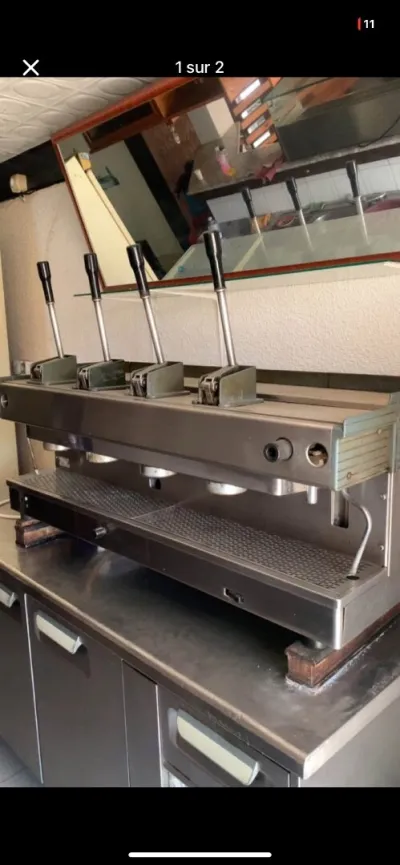 A vendre matériel professionnel pour cafeteria qui se compose comme suit : Une machine a café professionnel dernière génération CONTI avec 4 bras Un grand bar (3.80 m) avec frigo inclu