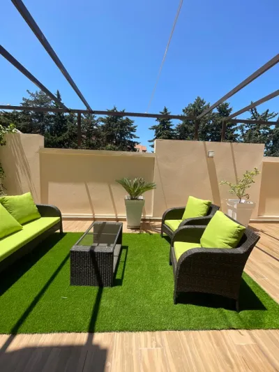 Appartement superposé de 77 m² situé dans un quartier en face d'un parking à 100 mètres de distance jusqu'à la plage, 10 minutes de marche vers le manege Mostaland, près de toutes les