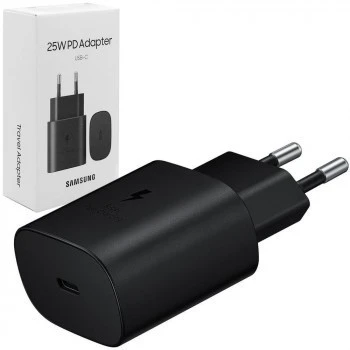 Adaptateur Samsung 25W PD USB-C Un chargeur Samsung doté de la technologie Super Fast Charge chargera le téléphone de 0 à 50 % en seulement une demi-heure. Grâce à cela, vous n'êtes p