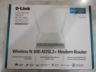 Modem Routeur Sans Fil D-Link DSL-2750U – 300 Mbps – 4 Ports Ethernet – ADSL2+ – 1 Port USB (Compatible 3G) Appareil en excellent état, fourni avec tous ses accessoires d’origine